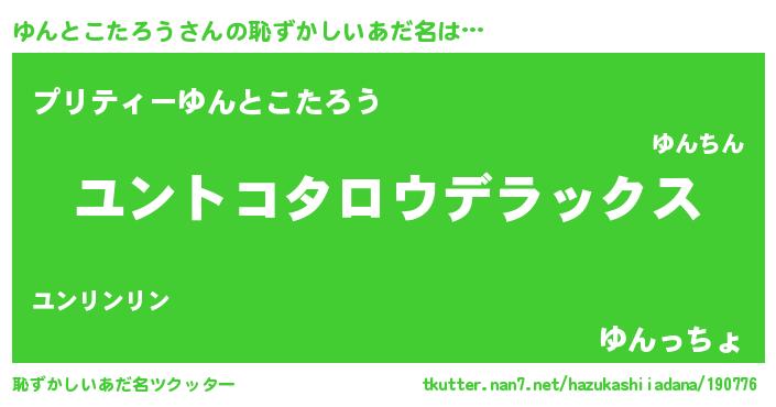 | 意味不明あだ名 | 『自称ゆんとこたろう』 |