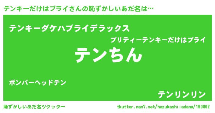 | ヘコむあだ名 | 『テンキーだけはブライ(笑)』『テンっ子』 |