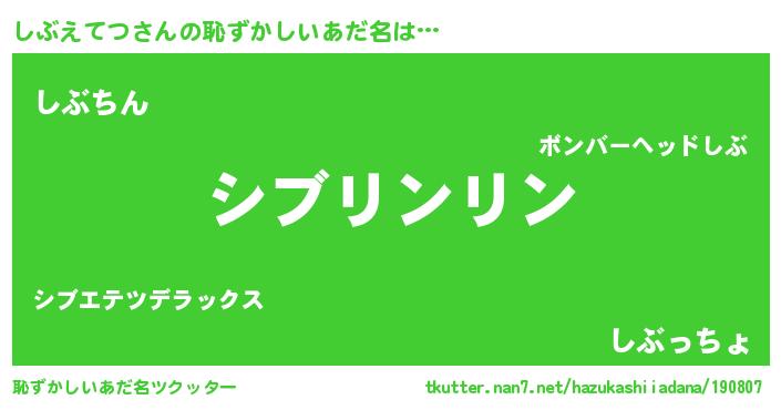 | 意味不明あだ名 | 『とにかく怪しいしぶえてつ』 |