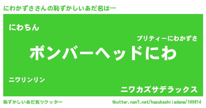 | 意味不明あだ名 | 『住所不定無職にわかずさ(5歳)』 |