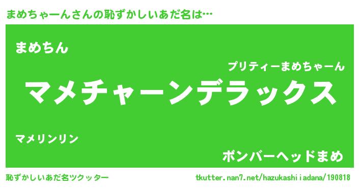 | 男性向けラノベタイトル風あだ名 | 『この素晴らしい世界にまめちゃーんを!』 |