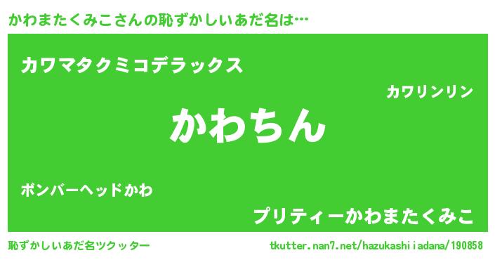 | 意味不明あだ名 | 『永久保存かわまたくみこ』 |
