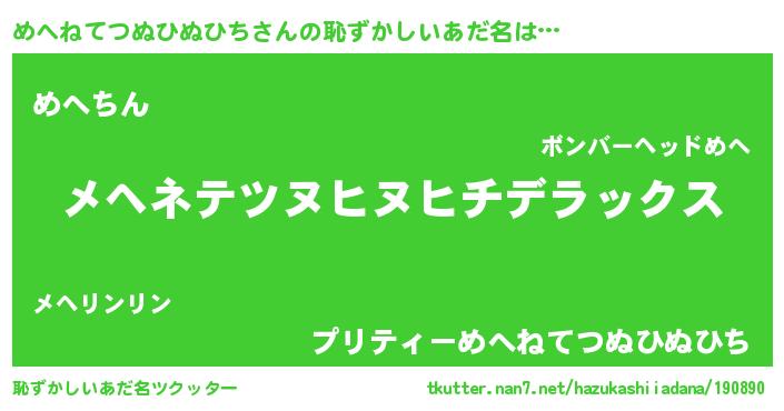 ヘコむあだ名 | 『めへねてつぬひぬひち(爆)』『めへっちょ』 |