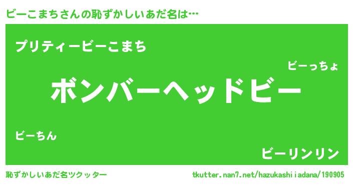 | ヒーロー風カッコイイあだ名 | 『天空の使者ビーこまち』『炎刃騎士ビー』 |