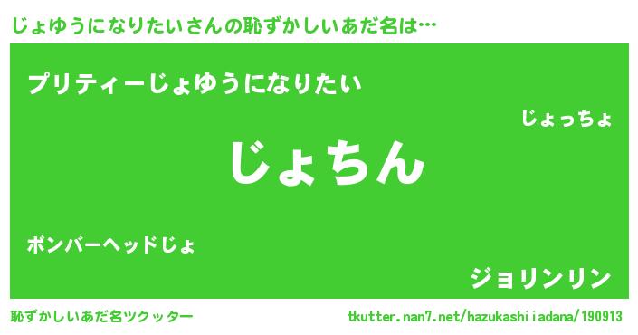 | 意味不明あだ名 | 『永久保存じょゆうになりたい』 |
