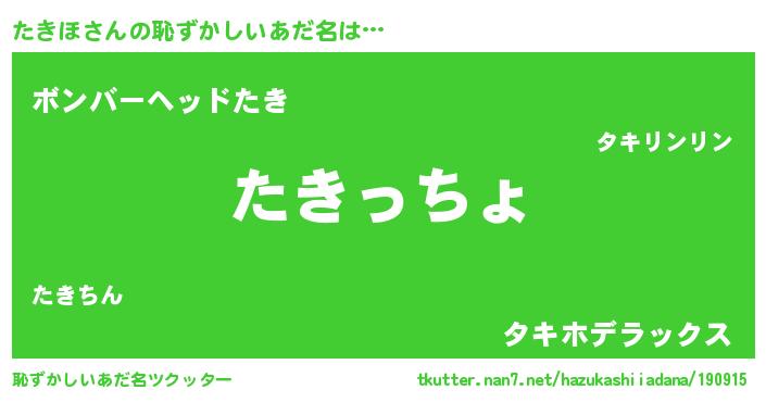 | ヒーロー風カッコイイあだ名 | 『ウルトラたきほマン』『究極戦士タキホ』 |