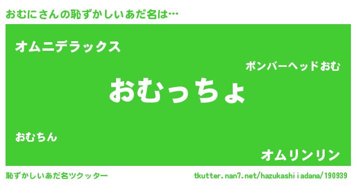 | 意味不明あだ名 | 『エリンギ科おむに属』『自称おむに』 |