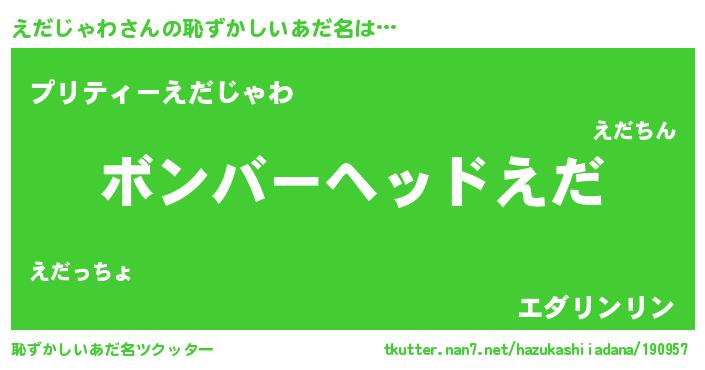 | 意味不明あだ名 | 『住所不定無職えだじゃわ(7歳)』 |