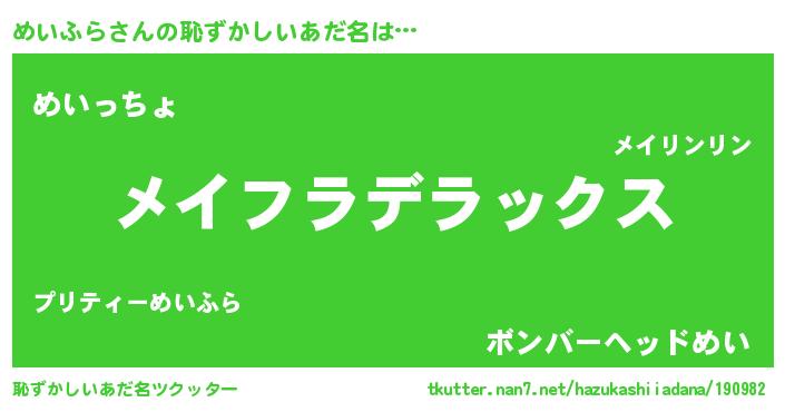 | ポケモン風あだ名 | 『メイセウス』『メイフダネ』 |