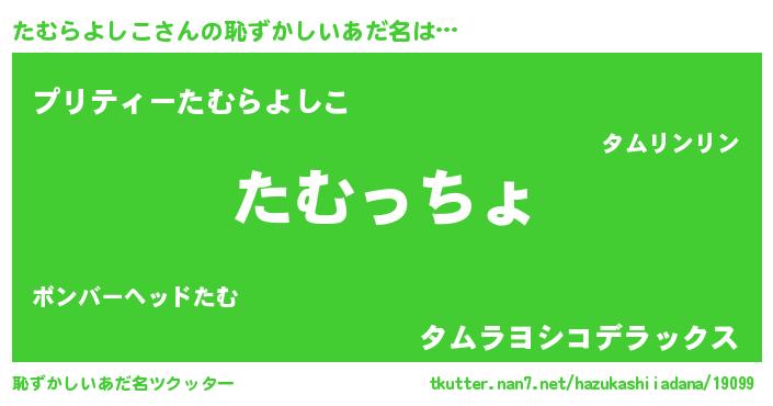 | ヒーロー風カッコイイあだ名 | 『仮面タムダー』『スーパータムラヨシコ』 |
