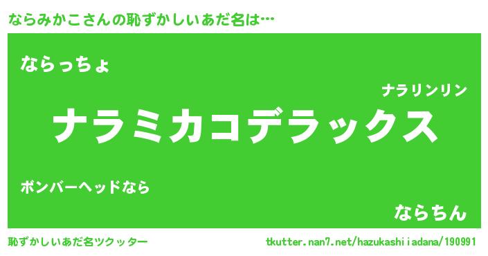 | ヒーロー風カッコイイあだ名 | 『最強戦士ナラミカコ』『ネオナラミカコ』 |