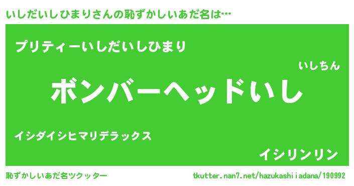 | 女子向けラノベタイトル風あだ名 | 『いしだいしひまり恋絵巻』 |