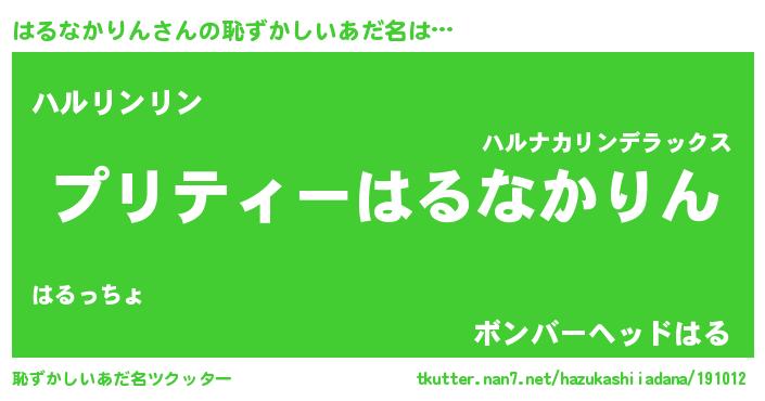 | 伝説のあだ名 | 『伝説のスナイパーはるなかりん』 |