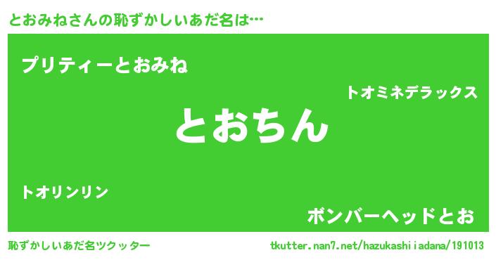 | ヘコむあだ名 | 『とおみね(笑)』『とおにー』 |