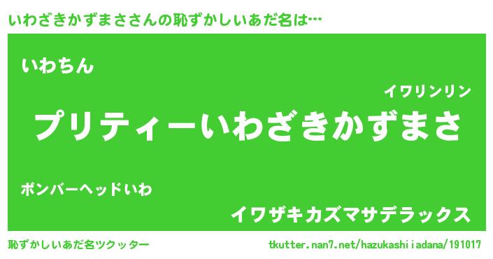 | ヘコむあだ名 | 『いわっふぃ~』『いわざきかずまさ(笑)』 |