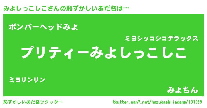 | ヒーロー風カッコイイあだ名 | 『スーパーミヨシッコシコ』 |