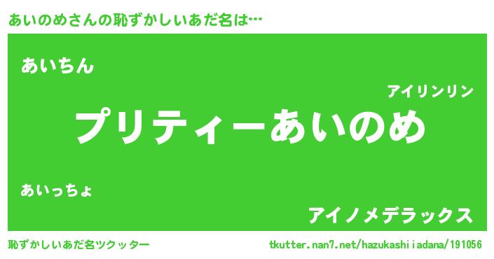| 意味不明あだ名 | 『ペロリンあいのめ』『永久保存あいのめ』 |