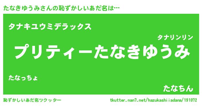 | ヘコむあだ名 | 『たなにー』『たなきゆうみ(苦笑)』 |