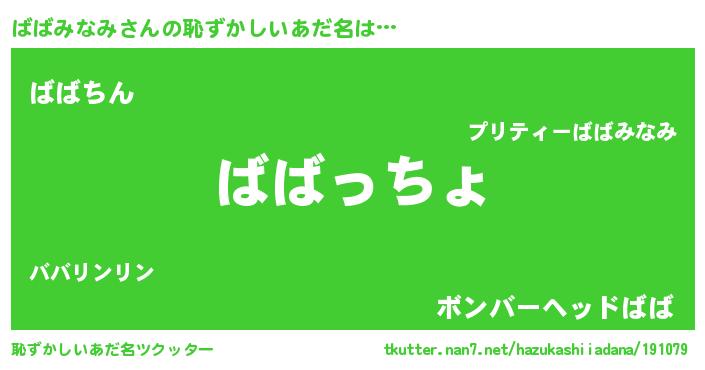 | 男性向けラノベタイトル風あだ名 | 『ばばみなみに滅ぼされるだけの簡単なお仕事です』 |