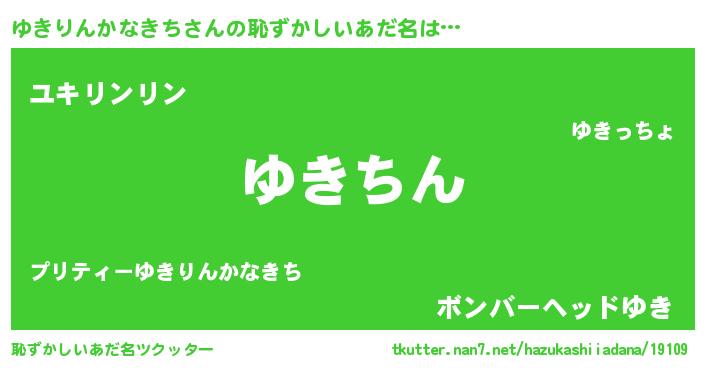 | 意味不明あだ名 | 『住所不定無職ゆきりんかなきち(93歳)』 |