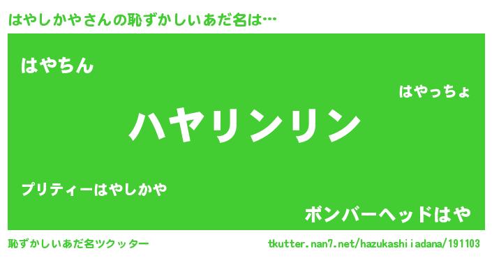 | ポケモン風あだ名 | 『ヒハヤシカヤ』『ハーヤイ』 |