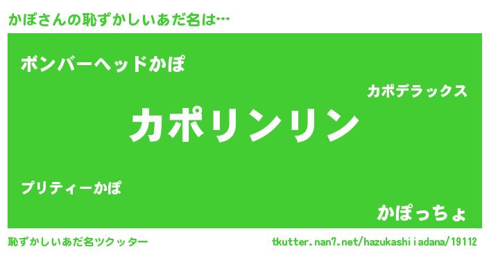 | ヘコむあだ名 | 『かぽっぺ』『レバニラ』『かぽもー』 |