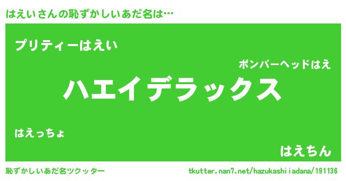 | 意味不明あだ名 | 『自称はえい』『ペロリンはえい』 |