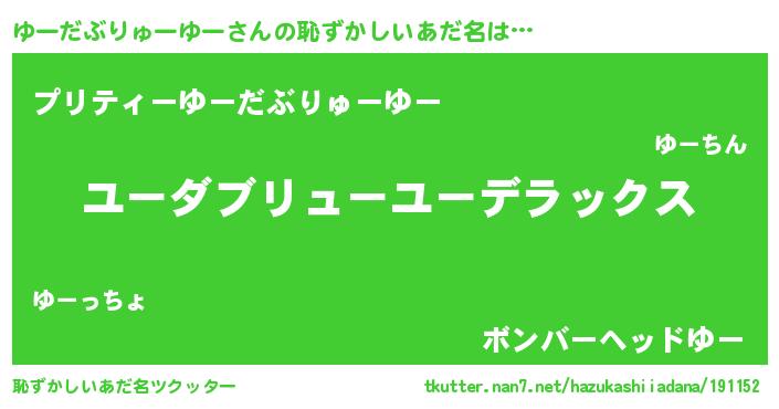 | 意味不明あだ名 | 『自称ゆーだぶりゅーゆー』 |