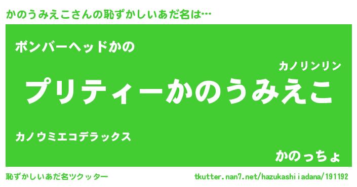 | ヒーロー風カッコイイあだ名 | 『仮面カノダー』『スーパーカノウミエコ』 |