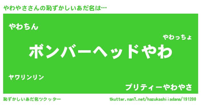 | ヘコむあだ名 | 『やわやさ(小並感)』『やわもー』 |