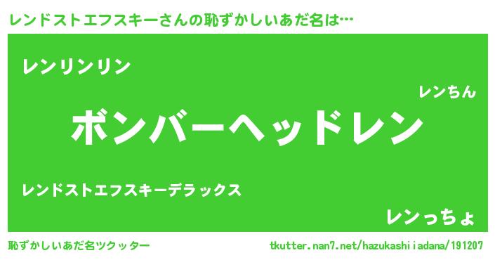 | 女子向けラノベタイトル風あだ名 | 『死神レンドストエフスキーの再婚』 |