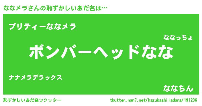 | ヒーロー風カッコイイあだ名 | 『愛の使者ななメラ』『スーパーナナメラ』 |