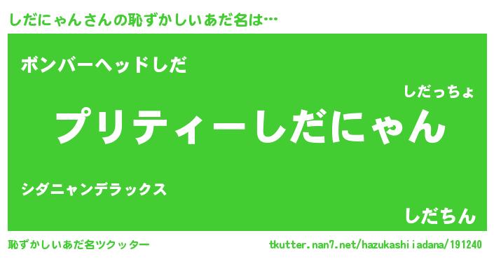| 欧米人風あだ名 | 『ダレノガレしだにゃん』 |