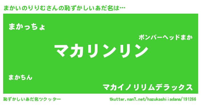 | 意味不明あだ名 | 『とにかく怪しいまかいのりりむ』 |