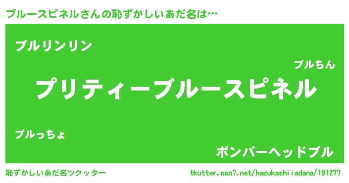 | 男性向けラノベタイトル風あだ名 | 『うちのブルースピネルが世界を掌握している!』 |