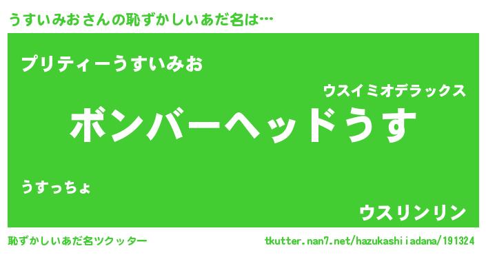 | ヒーロー風カッコイイあだ名 | 『慈愛の使者うすいみお』『暗黒騎士ウス』 |