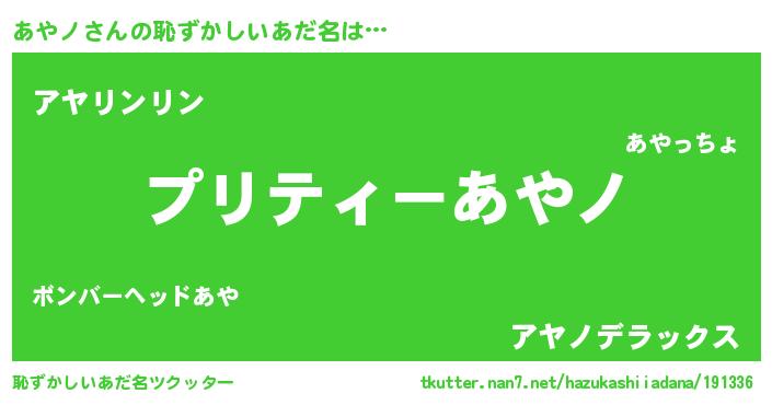 | ポケモン風あだ名 | 『アヤチュウ』『ヒアヤノ』 |