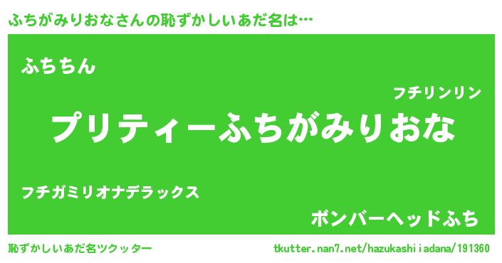 | ヘコむあだ名 | 『ふちにー』『ふちがみりおな(震え声)』 |
