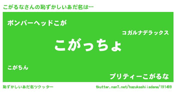 | 男性向けラノベタイトル風あだ名 | 『やはりこがるなの青春ラブコメはまちがっている 』 |