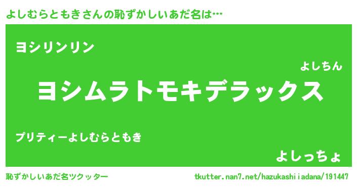 | 意味不明あだ名 | 『自称よしむらともき』 |