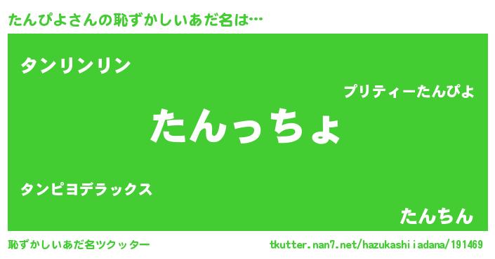 | 男性向けラノベタイトル風あだ名 | 『転生したらたんぴよだった件』 |