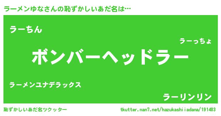 | ヘコむあだ名 | 『ラーメンゆな(遠い目)』『ラー太郎』 |