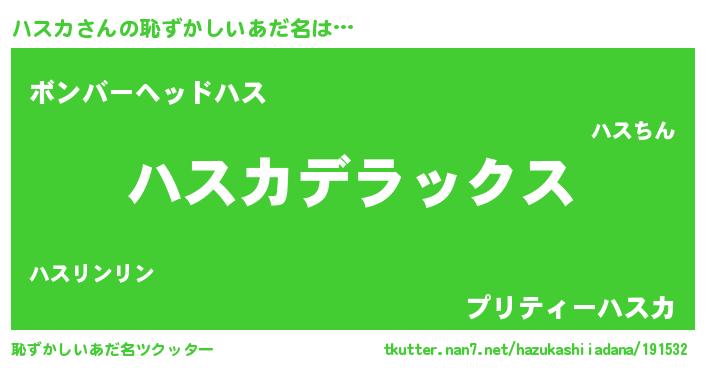 | 女子向けラノベタイトル風あだ名 | 『ハスカなんてお断りですっ。』 |