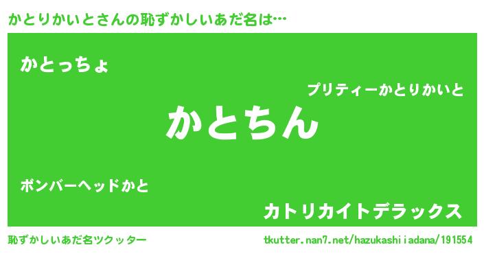| 可愛いあだ名 | 『かとりかいとママ』『かとちー』 |