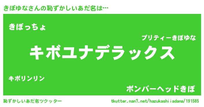| 男性向けラノベタイトル風あだ名 | 『Re:きぼゆなから始める異世界生活』 |