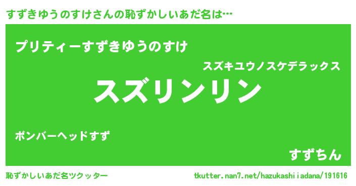 | ポケモン風あだ名 | 『スズキング』『ヒスズキユウノスケ』 |