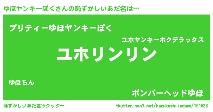 | 女子向けラノベタイトル風あだ名 | 『ゆほヤンキーぽくの玉の輿計画!』 |