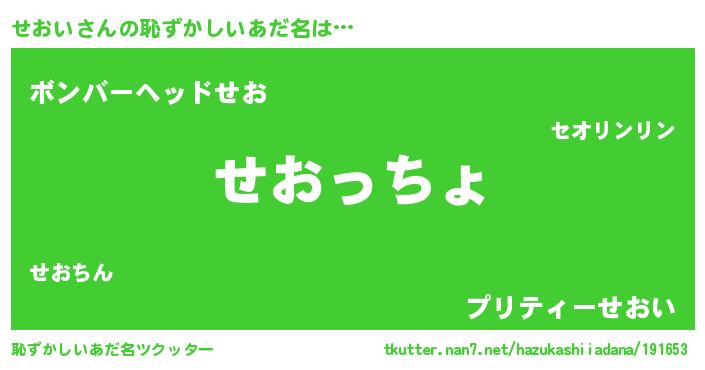 | ヘコむあだ名 | 『なまこ酢』『せおにー』『せおっ子』 |