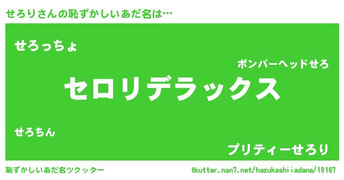 | 意味不明あだ名 | 『自称せろり』『せろりフォーエバー』 |