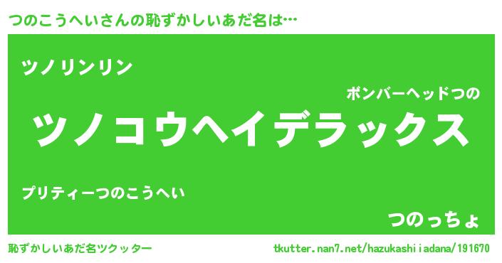 | 意味不明あだ名 | 『自称つのこうへい』 |